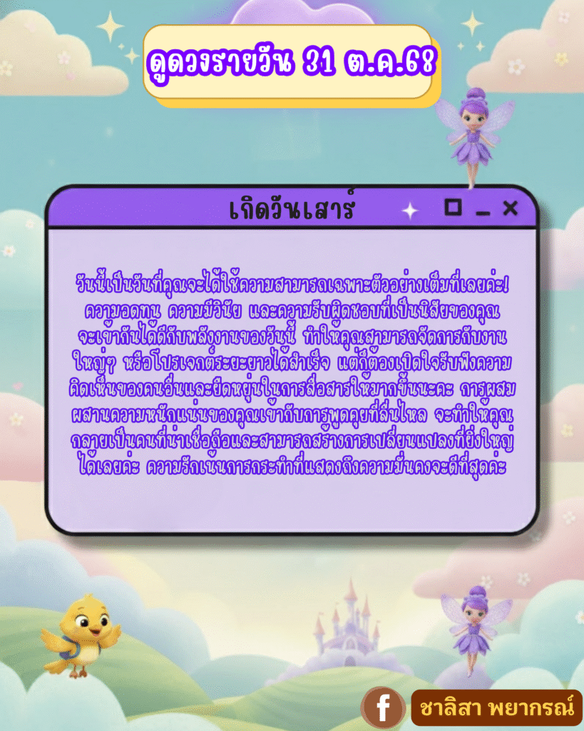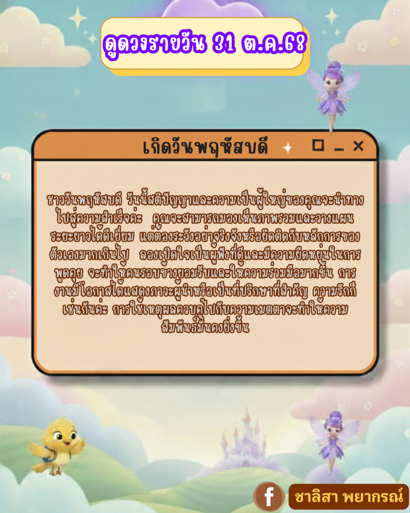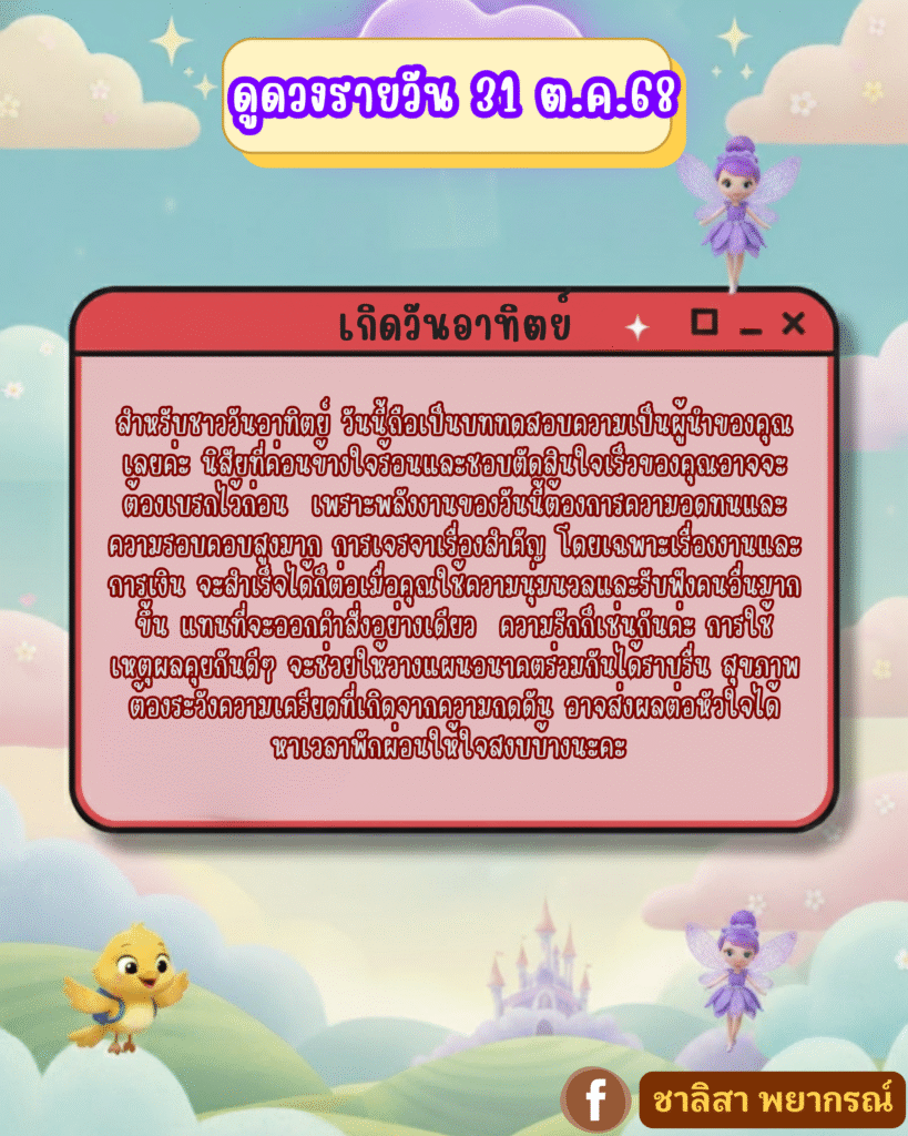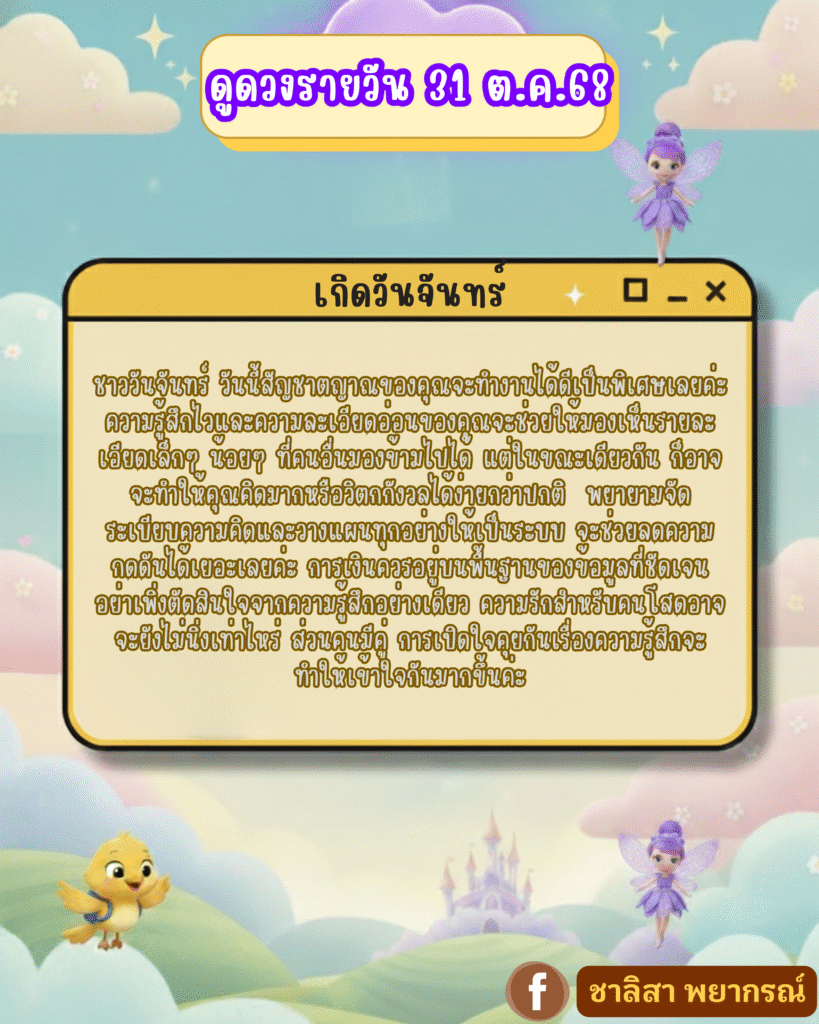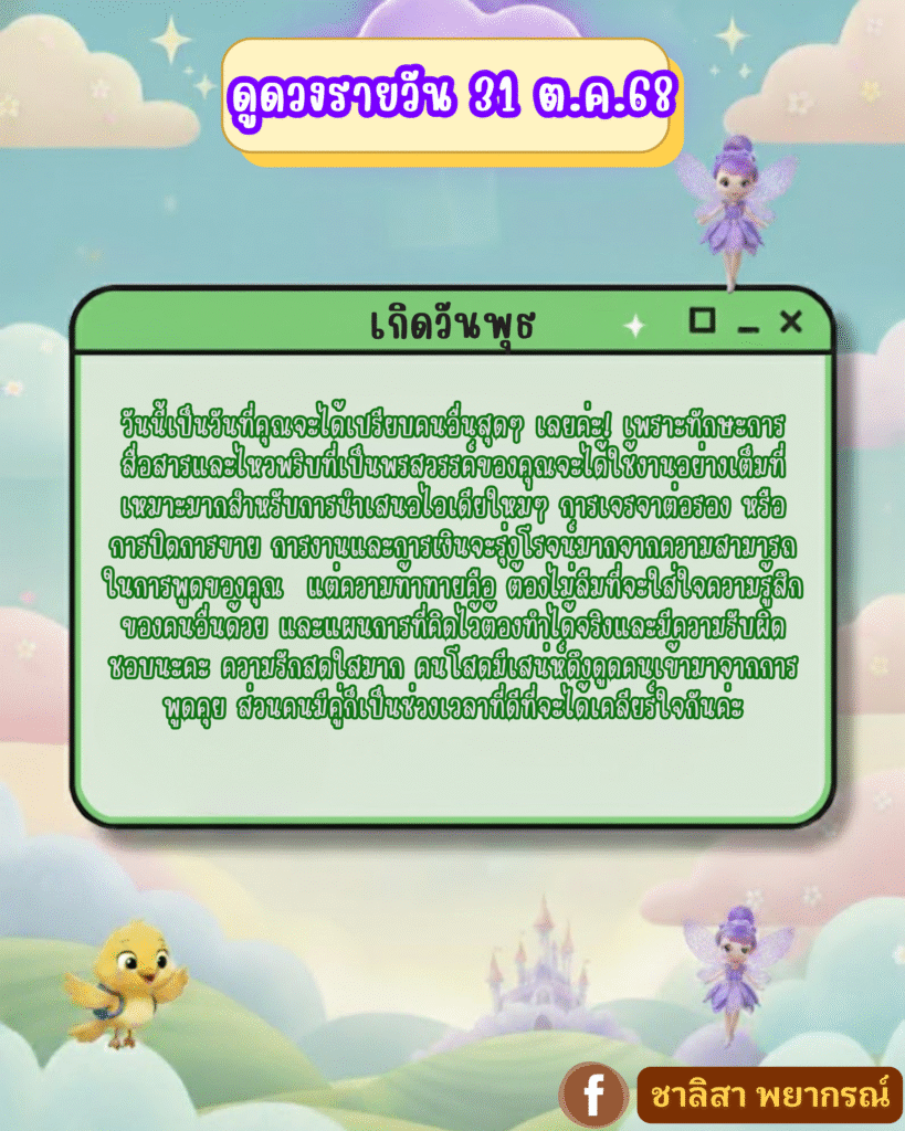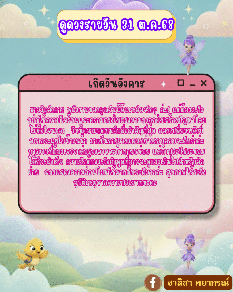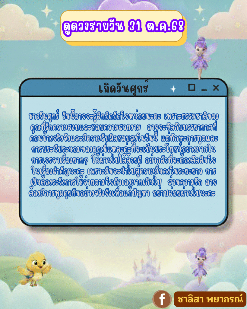 ชาลิสา พยากรณ์ ดวงรายวัน 31/10/2568