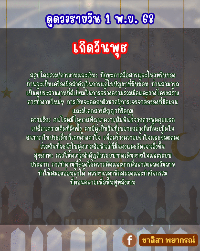 Top 5 This Week เสริมบารมี เสริมวาสนา มูเตลู Palungchok - ธันวาคม 2, 2025 กลางสัปดาห์แห่งการตั้งจิตอธิษฐาน มูเตลู Palungchok - ธันวาคม 2, 2025 “องค์เวสสุวรรณช่วยขจัดอุปสรรคทั้งปวงเปิดทางให้ทรัพย์ไหลมา โชคดีเข้าหาแบบไม่คาดฝัน” มูเตลู Palungchok - ธันวาคม 2, 2025 เริ่มต้นด้วยพลังแห่งการปกป้อง Blog Palungchok - ธันวาคม 2, 2025 ทุกวันคือโอกาสใหม่ มูเตลู Palungchok - ธันวาคม 2, 2025 Related Posts ตรวจดวงชะตารายวันที่แม่นที่สุด พร้อมเลขเด่นประจำวัน ดูดวง ตรวจดวงชะตารายวันที่แม่นที่สุด พร้อมเลขเด่นประจำวัน ดูดวง ตรวจดวงชะตารายวันที่แม่นที่สุด พร้อมเลขเด่นประจำวัน Blog ตรวจดวงชะตารายวันที่แม่นที่สุด พร้อมเลขเด่นประจำวัน ดูดวง ตรวจดวงชะตารายวันที่แม่นที่สุด พร้อมเลขเด่นประจำวัน ดูดวง ตรวจดวงชะตารายวันที่แม่นที่สุด พร้อมเลขเด่นประจำวัน ดูดวง ชาลิสา พยากรณ์ ดวงรายวัน 01/11/2568 ดูดวงทำนาย Author: Palungchok พฤศจิกายน 1, 2025 Less than 1 min.read FacebookTwitterPinterestWhatsApp บทความก่อนหน้านี้#รูเหรือไม่บทความถัดไปแนวทางหวยรัฐบาลไทย 01 พ.ย. 68 Palungchokhttps://palungchok.com ทิ้งคำตอบไว้ ยกเลิกการตอบ ความคิดเห็น กรุณาใส่ความคิดเห็นของคุณ! ชื่อ* กรุณาใส่ชื่อของคุณที่นี่ อีเมล์* คุณป้อนที่อยู่อีเมลไม่ถูกต้อง! กรุณาใส่ที่อยู่อีเมลของคุณที่นี่ เว็บไซต์ บันทึกชื่ออีเมลและเว็บไซต์ของฉันในเบราว์เซอร์นี้ในครั้งต่อไปที่ฉันแสดงความคิดเห็น Popular Articles เสริมบารมี เสริมวาสนา กลางสัปดาห์แห่งการตั้งจิตอธิษฐาน “องค์เวสสุวรรณช่วยขจัดอุปสรรคทั้งปวงเปิดทางให้ทรัพย์ไหลมา โชคดีเข้าหาแบบไม่คาดฝัน” เริ่มต้นด้วยพลังแห่งการปกป้อง ทุกวันคือโอกาสใหม่