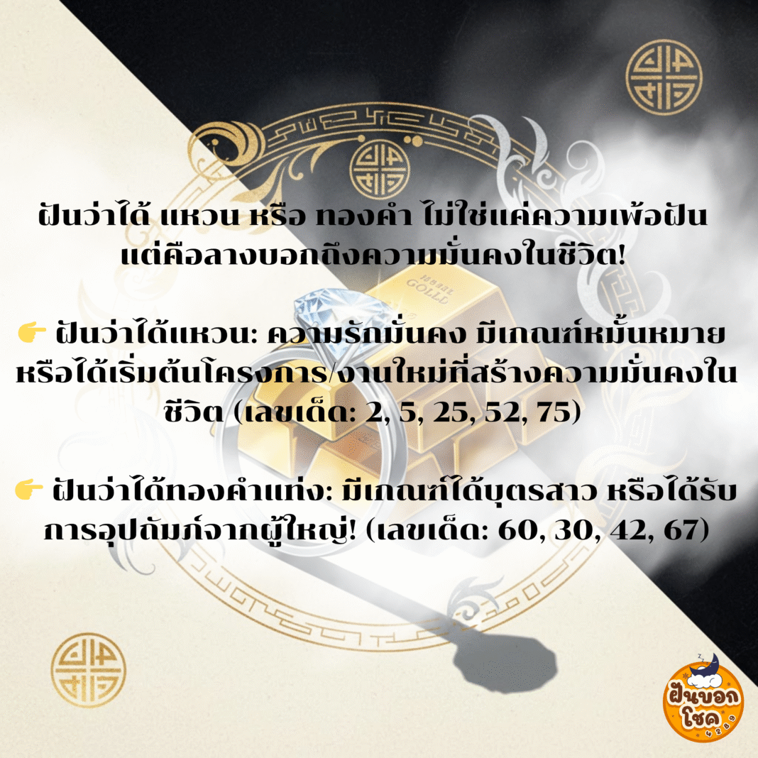 ทองเข้า! แหวนเข้า! โชคลาภกำลังจะเข้ามา! ฝันว่าได้ แหวน หรือ ทองคำ ไม่ใช่แค่ความเพ้อฝัน แต่คือลางบอกถึงความมั่นคงในชีวิต!