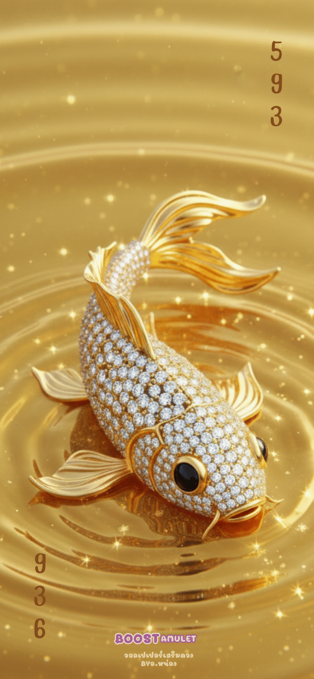 - ปลาคาร์ปทองคำประดับเพชร: ปลาคาร์ปเป็นสัญลักษณ์ของความมั่งคั่ง อุดมสมบูรณ์ และความสำเร็จ การที่ปลาคาร์ปทำจากทองคำและประดับด้วยเพชร แสดงถึงความหรูหรา ความมั่งคั่งระดับสูง และคุณค่าอันเป็นนิรันดร์ เป็นการเสริมพลังด้านการเงินให้แข็งแกร่ง นำพาความร่ำรวยและผลกำไรมาสู่กิจการ