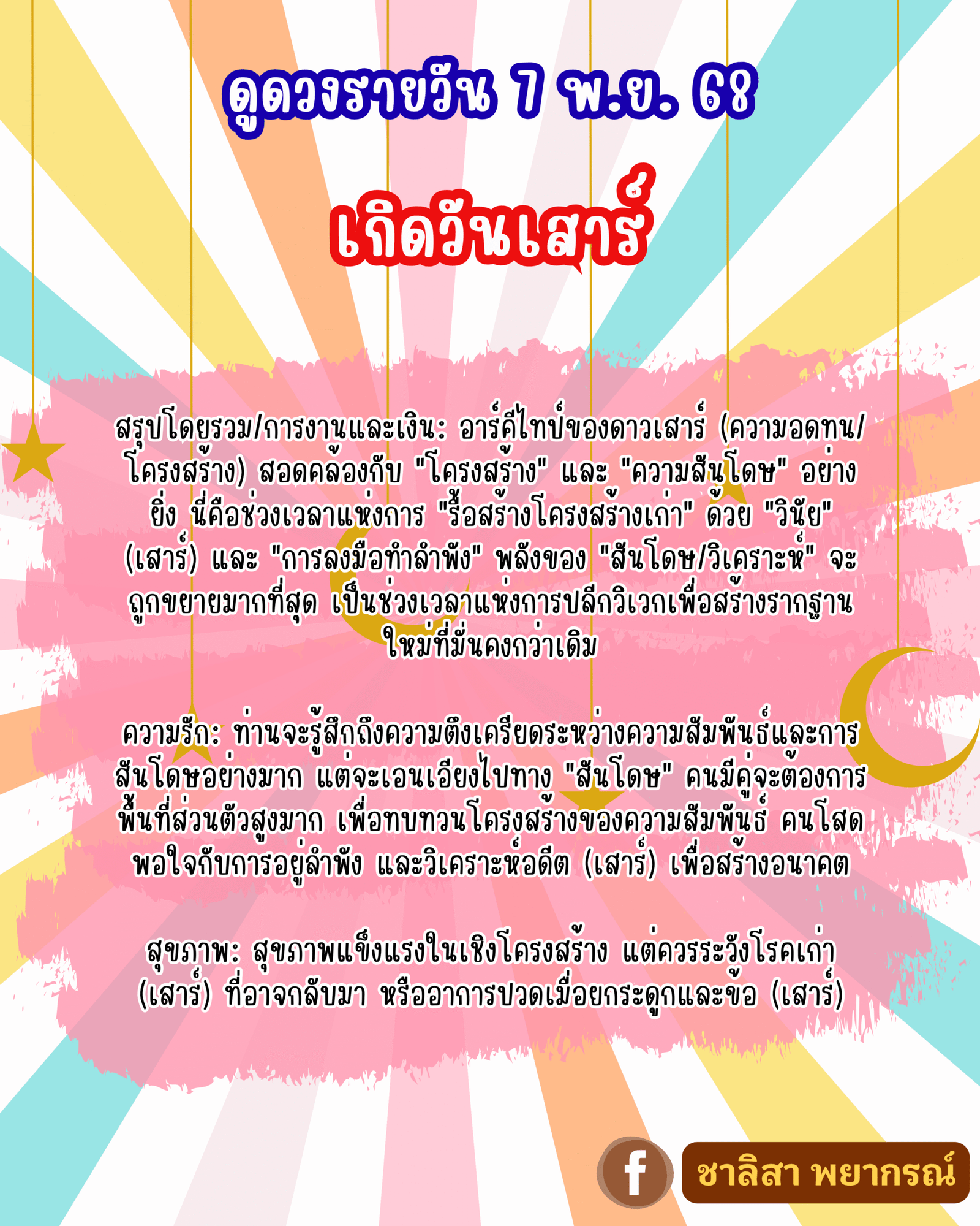 Top 5 This Week เสริมบารมี เสริมวาสนา มูเตลู Palungchok - ธันวาคม 2, 2025 กลางสัปดาห์แห่งการตั้งจิตอธิษฐาน มูเตลู Palungchok - ธันวาคม 2, 2025 “องค์เวสสุวรรณช่วยขจัดอุปสรรคทั้งปวงเปิดทางให้ทรัพย์ไหลมา โชคดีเข้าหาแบบไม่คาดฝัน” มูเตลู Palungchok - ธันวาคม 2, 2025 เริ่มต้นด้วยพลังแห่งการปกป้อง Blog Palungchok - ธันวาคม 2, 2025 ทุกวันคือโอกาสใหม่ มูเตลู Palungchok - ธันวาคม 2, 2025 Related Posts เริ่มต้นด้วยพลังแห่งการปกป้อง Blog องค์เวสสุวรรณโปรดเมตตาให้ผู้ศรัทธาได้รับทรัพย์ รับโชค รับเงินทองไม่ขาดมือ มูเตลู ตรวจดวงชะตารายวันที่แม่นที่สุด พร้อมเลขเด่นประจำวัน ดูดวง Pick a Card เราควรไปเที่ยวที่ไหนเพื่อเติมพลัง? ทายใจ Pick a Card เราควรเชื่อในตัวเองเรื่องไหนมากขึ้น? ทายใจ ตรวจดวงชะตารายวันที่แม่นที่สุด พร้อมเลขเด่นประจำวัน ดูดวง ชาลิสา พยากรณ์ ดวงรายวัน 07/11/2568 Blogดูดวงทายใจ Author: Palungchok พฤศจิกายน 7, 2025 Less than 1 min.read FacebookTwitterPinterestWhatsApp บทความก่อนหน้านี้pick a Card เขาแอบมีใครอีกไหม?บทความถัดไปเงาบนดวงจันทร์: ไขข้อเท็จจริงทฤษฎีสมคบคิด “Moon Hoax” ที่ยังคงอยู่ Palungchokhttps://palungchok.com ทิ้งคำตอบไว้ ยกเลิกการตอบ ความคิดเห็น กรุณาใส่ความคิดเห็นของคุณ! ชื่อ* กรุณาใส่ชื่อของคุณที่นี่ อีเมล์* คุณป้อนที่อยู่อีเมลไม่ถูกต้อง! กรุณาใส่ที่อยู่อีเมลของคุณที่นี่ เว็บไซต์ บันทึกชื่ออีเมลและเว็บไซต์ของฉันในเบราว์เซอร์นี้ในครั้งต่อไปที่ฉันแสดงความคิดเห็น Popular Articles เสริมบารมี เสริมวาสนา กลางสัปดาห์แห่งการตั้งจิตอธิษฐาน “องค์เวสสุวรรณช่วยขจัดอุปสรรคทั้งปวงเปิดทางให้ทรัพย์ไหลมา โชคดีเข้าหาแบบไม่คาดฝัน” เริ่มต้นด้วยพลังแห่งการปกป้อง ทุกวันคือโอกาสใหม่